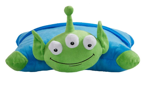 TOY STORY: Take a trip to Pizza Planet or go on an adventure with Woody and Buzz with this Green Alien Pillow Pet! Featuring three eyes and one big smile, this plush is just the thing you need.