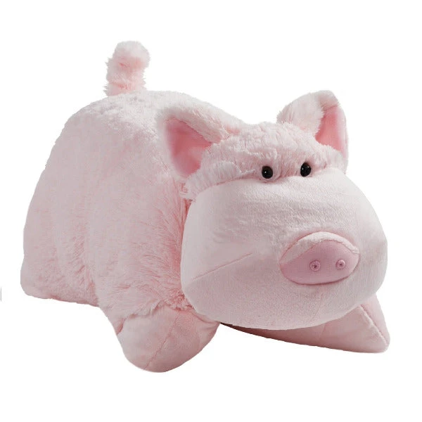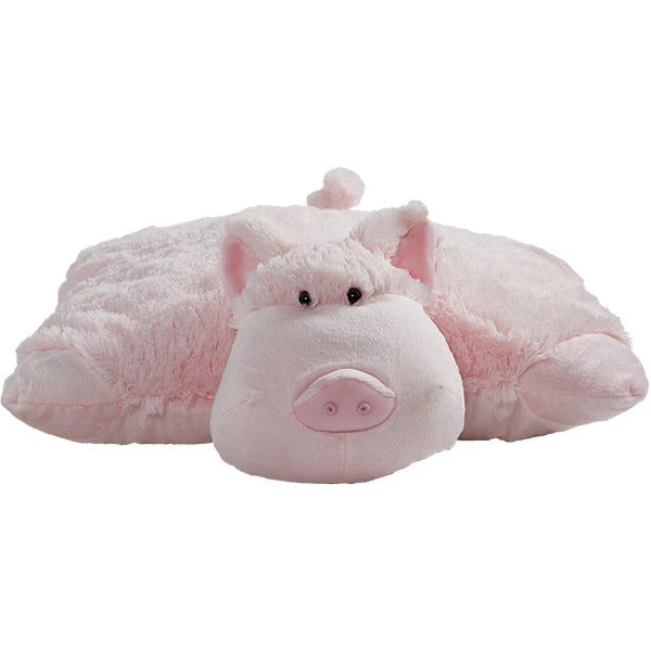 Get tons of warm snuggly happiness and cuddle up every day and night with the Pillow Pets Wiggly Pig! The plushest, friendliest, and softest stuffed animal you will find. Kids of all ages will enjoy the fun of everyday use as a toy for imaginative play and a large stuffed toy for reading, watching television, or studying with friends. Ideal for rest time and fun time – not to mention a comforting partner on road trips or airplane rides. Starts out as a pal, then quickly unfastens to become a comfy pillow!
