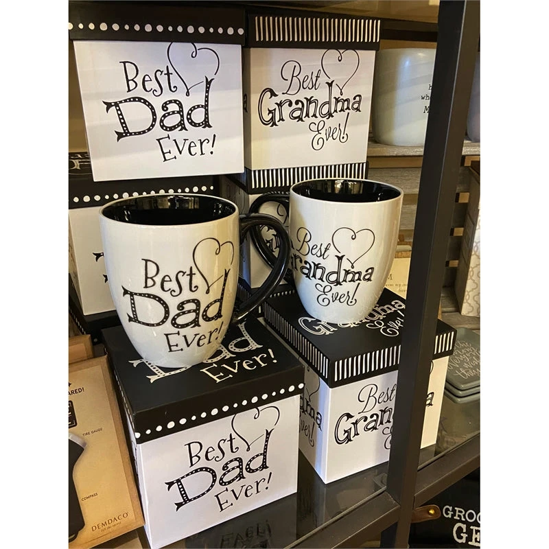 This 18 oz. customizable ceramic cup has a black and white design ready to color. Reads, “Best Dad Ever.” Markers are sold separately. Simply color, bake, and enjoy! Microwave safe. Hand wash recommended. Packaged in matching gift box.