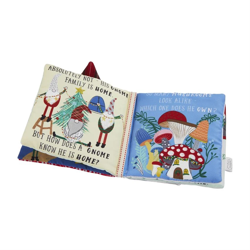 Come inside a Gnome’s home for the holidays with this whimsical baby-safe book. Cover includes faux fur dimensional beard, nose and hat. Material: Polyester and Cotton. Size: 6″ x 6″.
