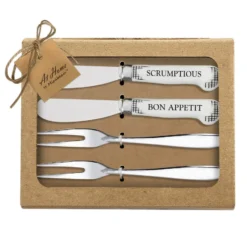Set Of 4 5″ Cheese Spreaders & Forks “Scrumptious, Bon Appetit”